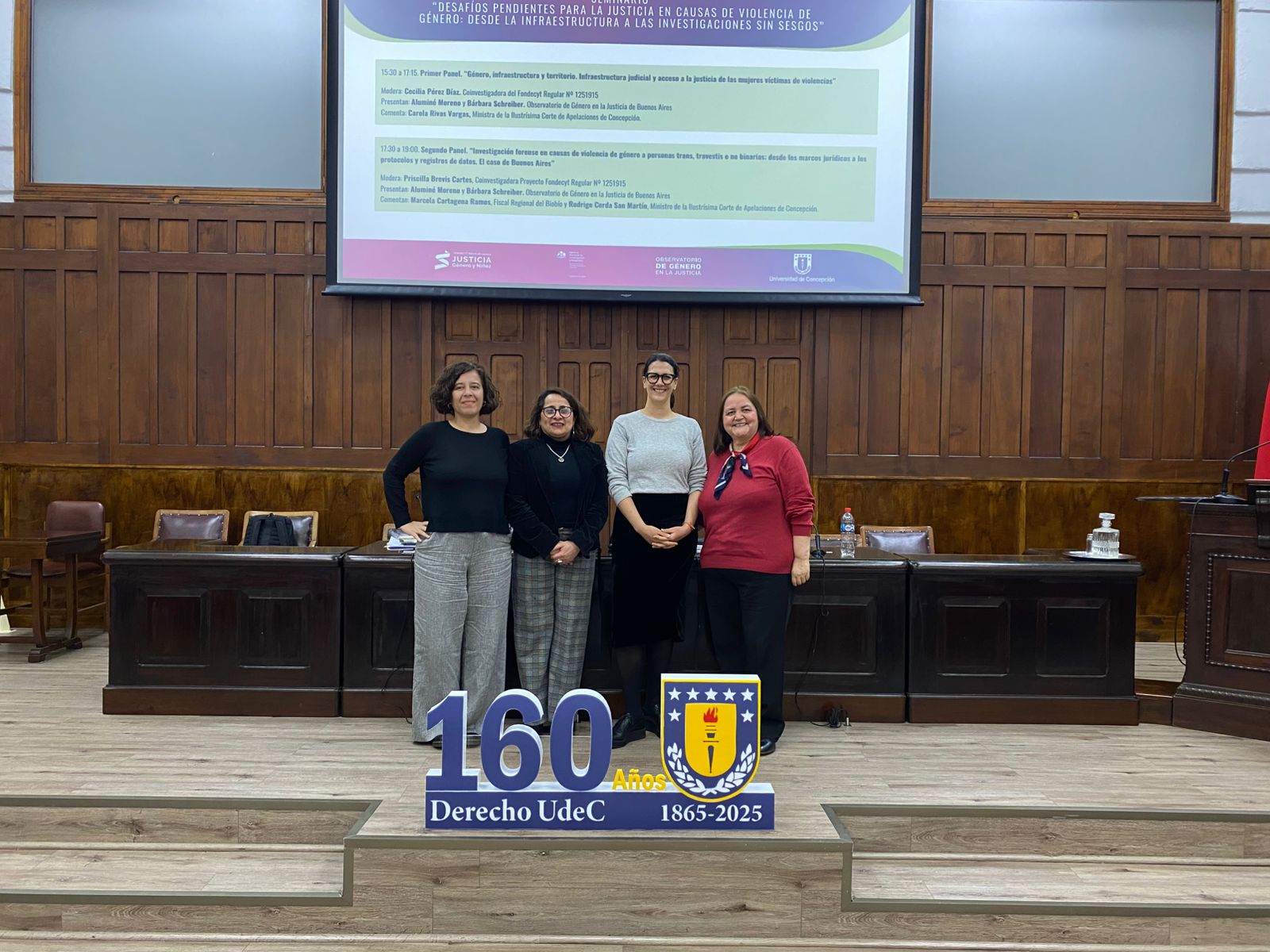 La actividad se enmarcó en el proyecto Fondecyt Regular N°1251915 “Acceso a la justicia para niños, niñas y adolescentes víctimas de violencia de género. Desafíos en la aplicación de la ley N°21.675”, y contó con la participación la Vicerrectora de Relaciones Institucionales y Vinculación con el Medio UdeC y directora del proyecto, Dra. Ximena Gauché Marchetti; la ministra y ministro de la Corte de Apelaciones de Concepción, Carola Rivas Vargas y Rodrigo Cerda San Martín; la fiscal regional del Biobío, Marcela Cartagena Bravo y las co-investigadoras del proyecto, Cecilia Pérez Díaz y Priscilla Brevis Cartes.