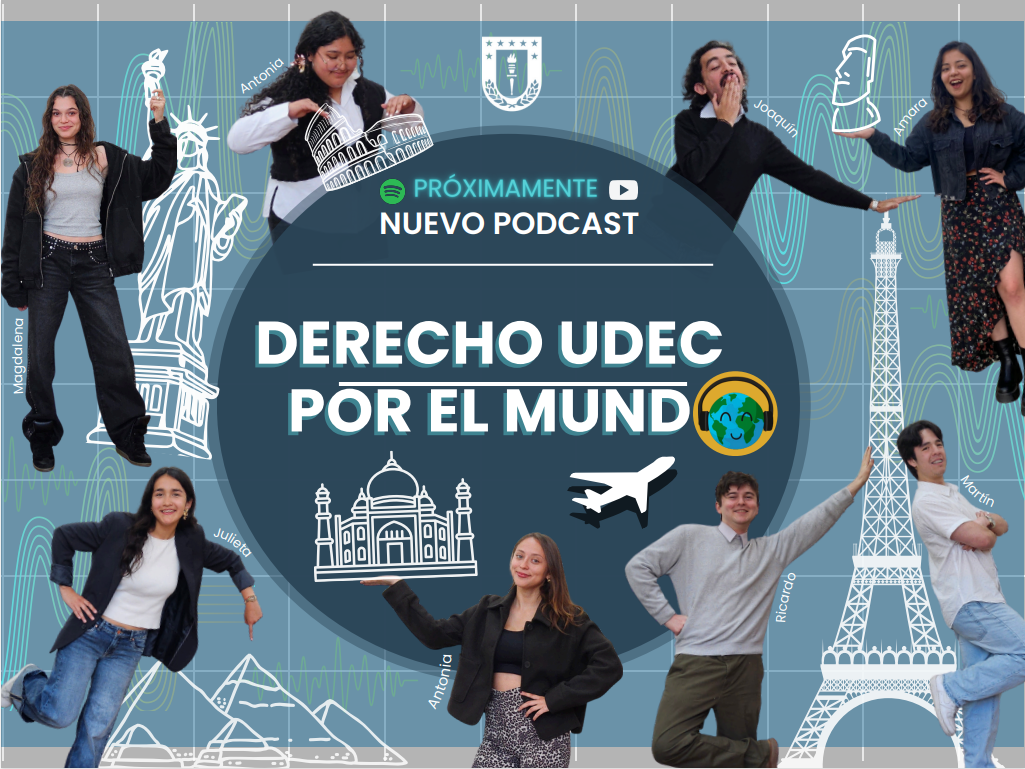 "Derecho UdeC por el mundo" es el primer podcast que tendrá nuestra Facultad y que será conducido por estudiantes de pregrado de la Carrera. Son diez episodios presentados en línea a través de las plataformas Spotify y Youtube, en los que se entrevistarán a exalumnos y exalumnas de Derecho que se encuentren viviendo y trabajando en el extranjero.