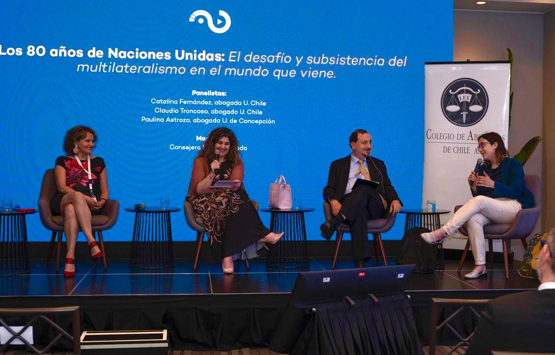 En este contexto, la académica del Departamento de Derecho Público y Directora del CEE, Dra. Paulina Astroza Suárez, participó como invitada en el panel “Los 80 años de Naciones Unidas. El desafío y subsistencia del multilateralismo en el mundo que viene”.