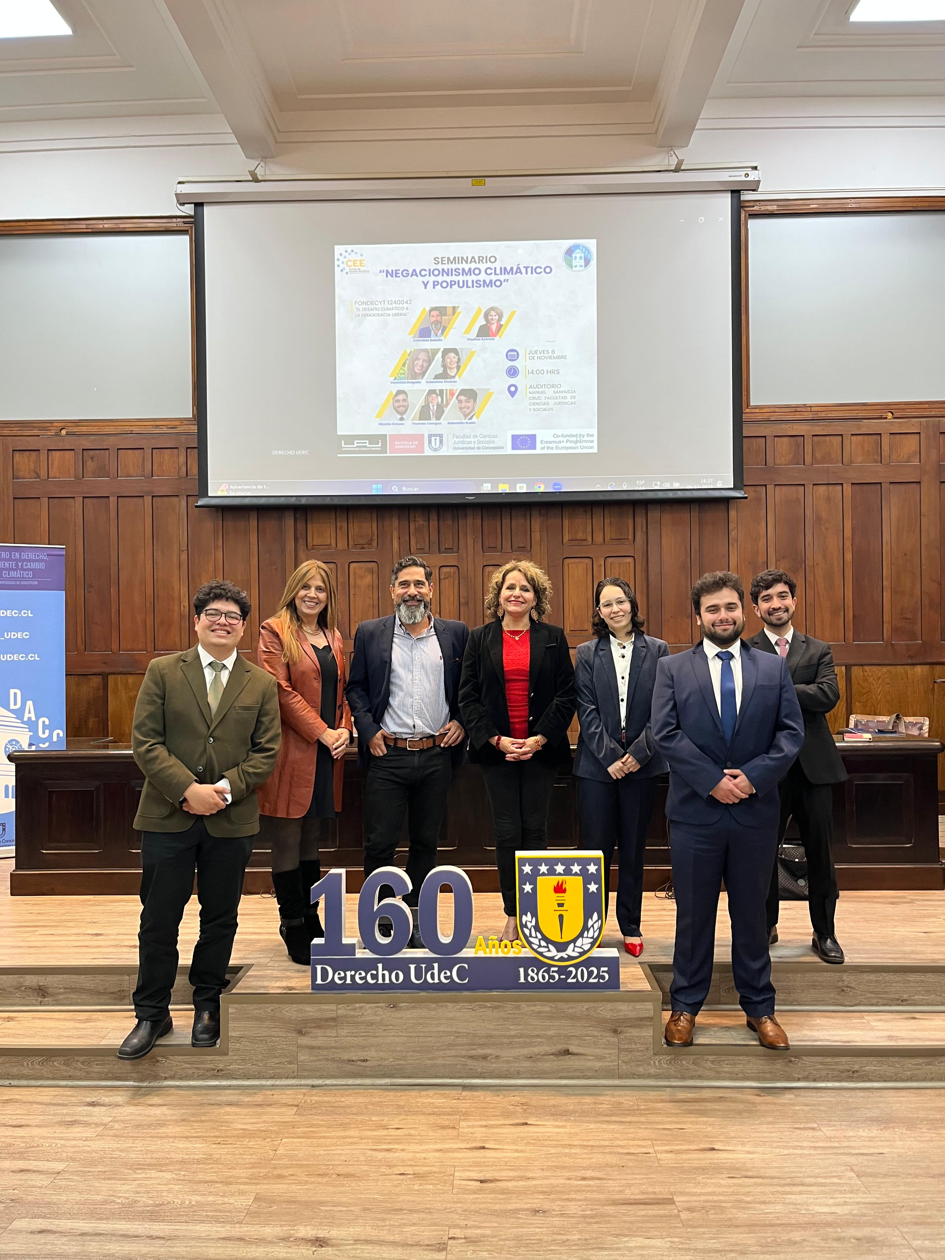 El encuentro contó con la participación de la Dra. Verónica Delgado, Directora del Centro en Derecho, Ambiente y Cambio Climático (DACC); del Dr. Cristóbal Bellolio, profesor de la Universidad Adolfo Ibáñez; la Dra. Paulina Astroza, Directora del Centro de Estudios Europeos (CEE); la Dra. © María Ignacia Sandoval del DACC, Valentina Álvarez, egresada de Derecho UdeC; y los cientistas políticos Nicolás Krause, Thomas Campos y Sebastián Rubio, todos de la Universidad de Chile. Esta iniciativa nace a partir de artículos que serán publicados en el libro “Tópicos de populismo contemporáneo” de la Cátedra Jean Monnet del CEE y editados por los académicos Astroza y Bellolio.