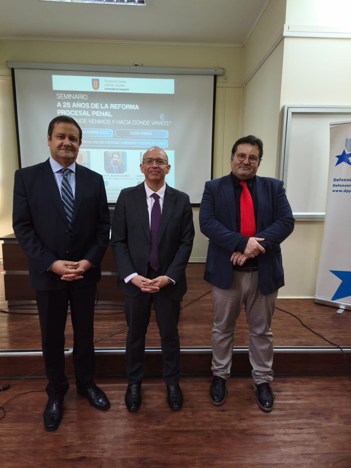 La actividad contó con dos destacados expositores. El profesor Rafael Blanco Suárez, de la Universidad Alberto Hurtado, compartió su experiencia como partícipe del debate legislativo que dio origen al actual sistema procesal penal y, posteriormente, como formador de jueces, fiscales y defensores tanto en Chile como en el extranjero. En su presentación, destacó el impacto que tuvo esta reforma en la superación de paradigmas arraigados en América Latina y en la consolidación de un modelo más transparente y eficaz de administración de justicia.